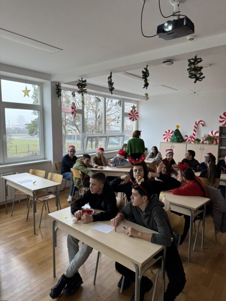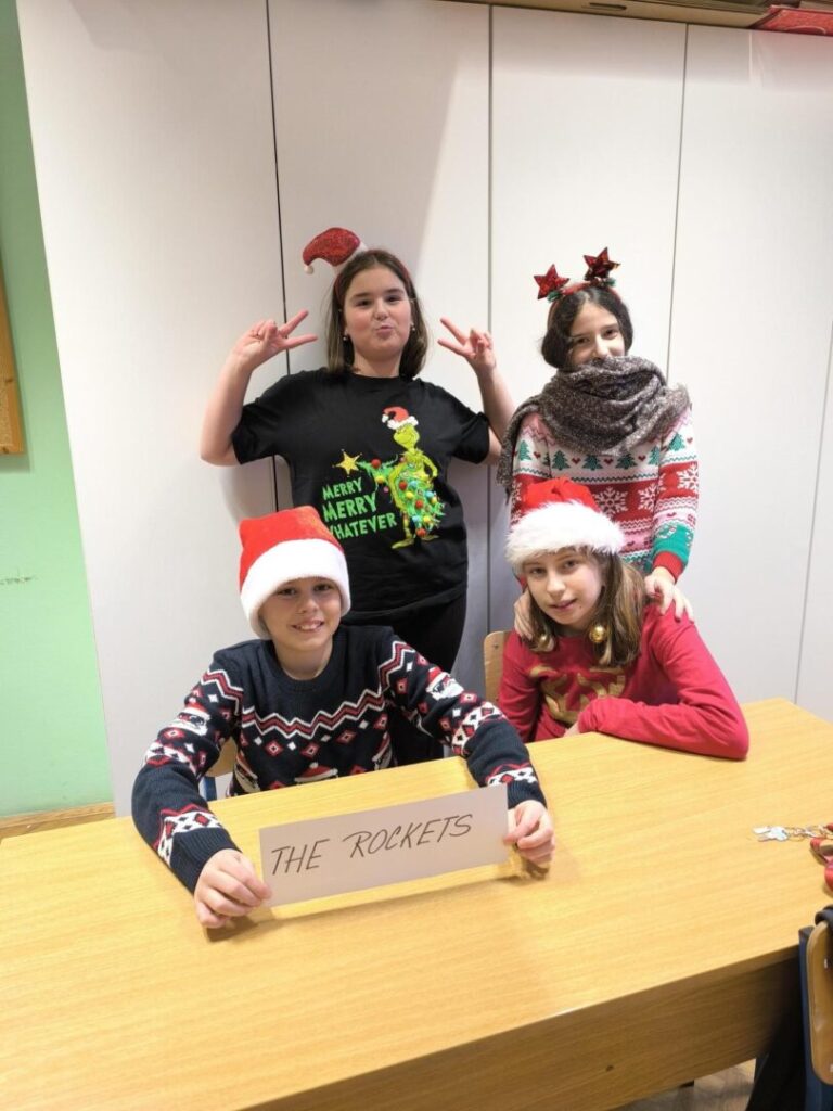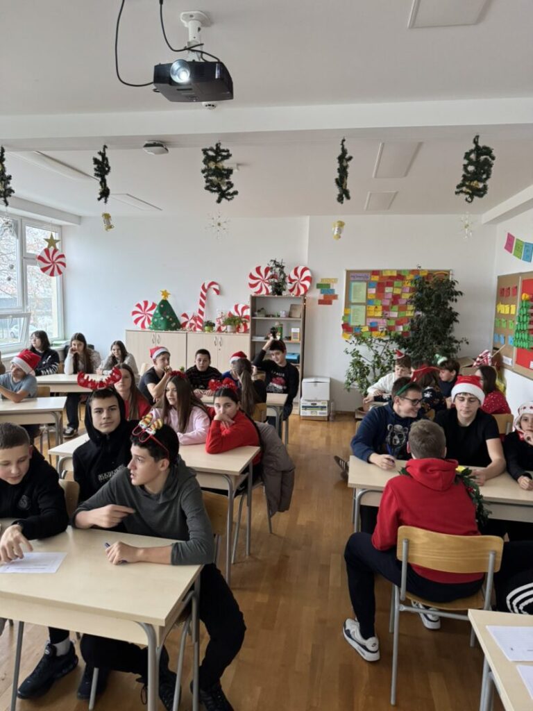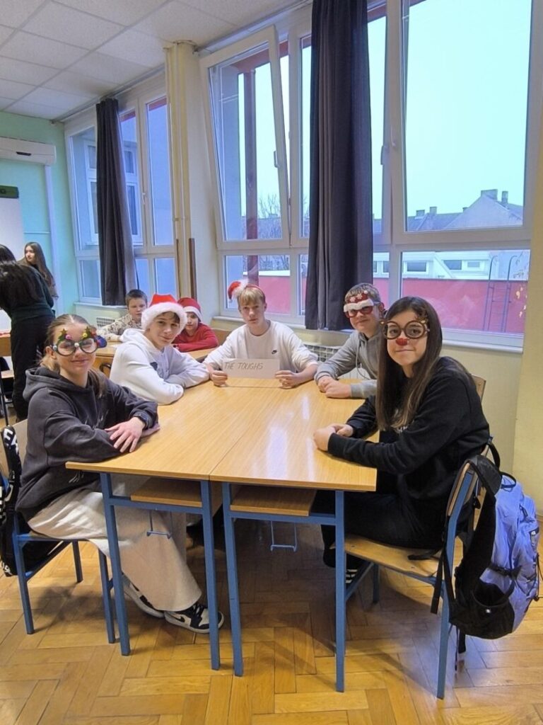 Vrijedne mentorice i učenici iz OŠ Tin Ujević, OŠ Retfala, OŠ Mladost, OŠ Višnjevac, OŠ Svete Ane, OŠ Tenja, OŠ Jagode Truhelke, OŠ Franje Krežme i OŠ Cvjetno odmjerili su snage odgovarajući na pitanja o običnim i neobičnim božićnim običajima, hrani, glazbi, filmovima around the world. Za dodatne bodove učenici i mentorice prigodno su se božićno „ukrasili!