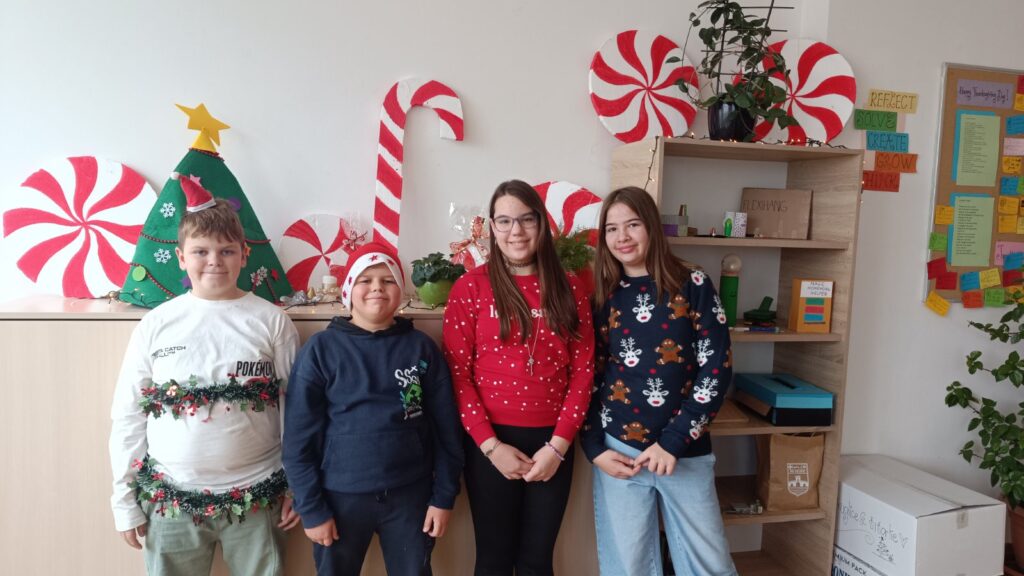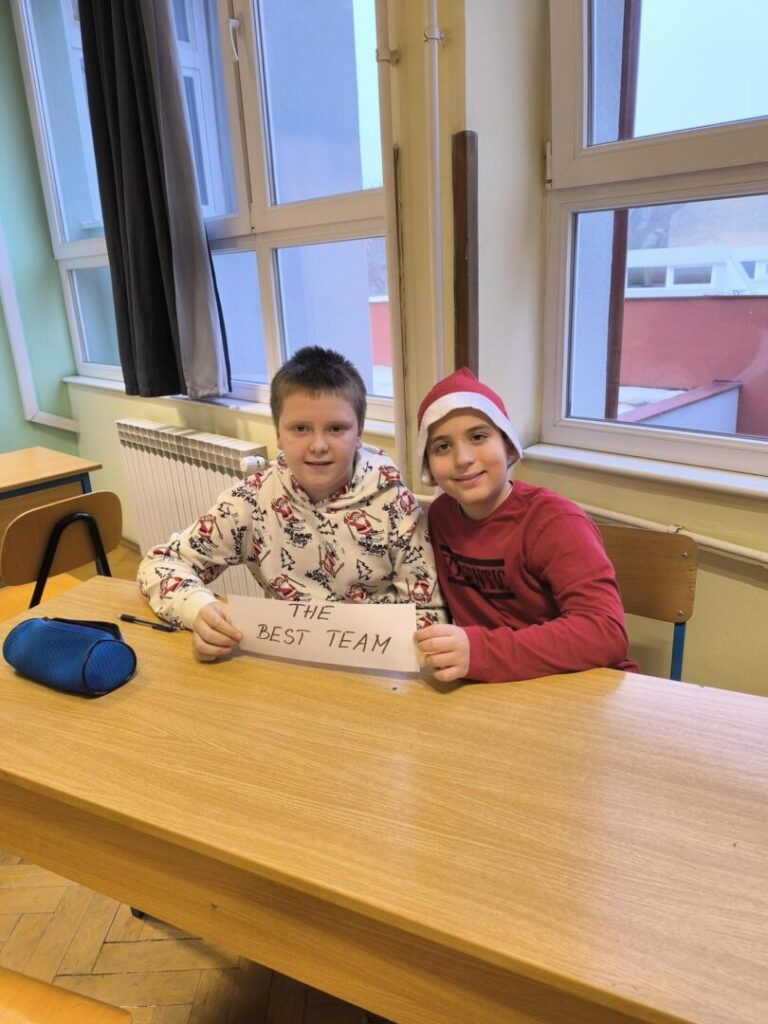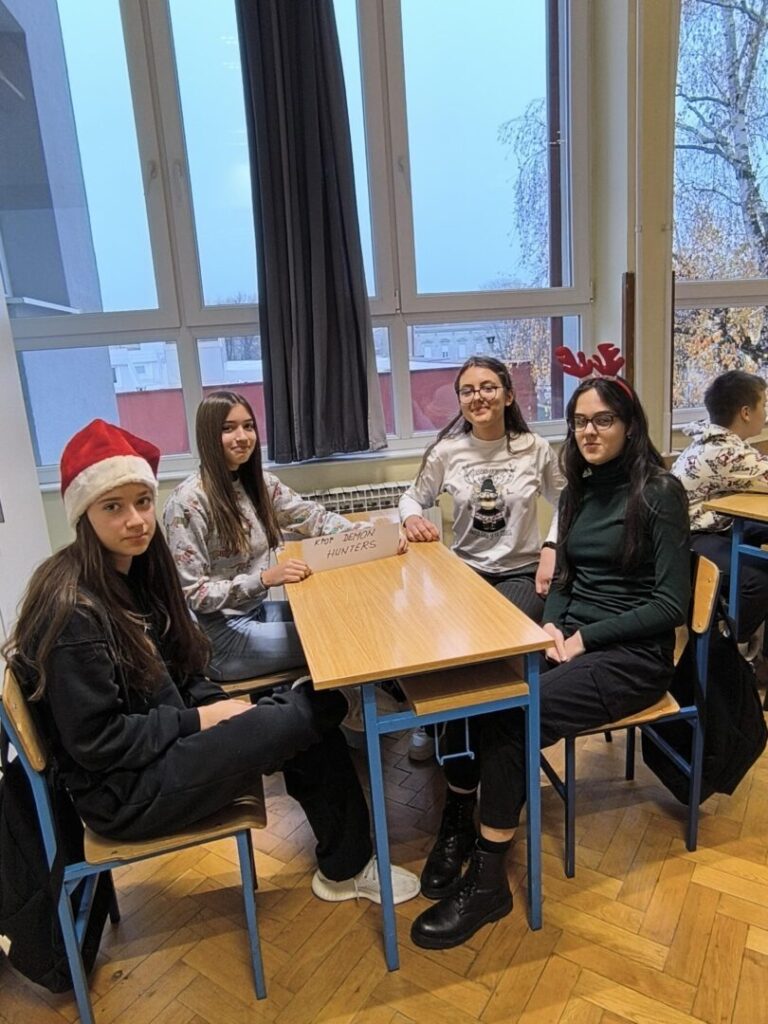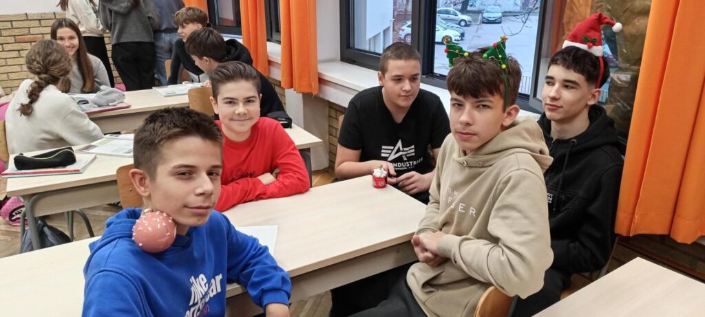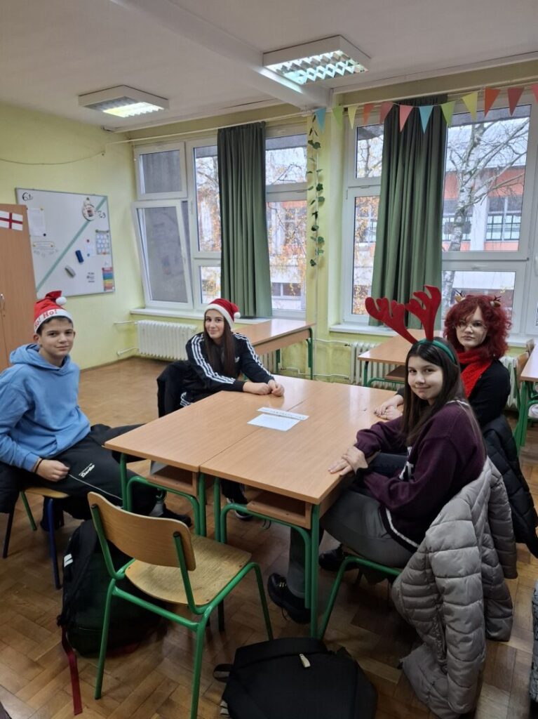 Vrijedne mentorice i učenici iz OŠ Tin Ujević, OŠ Retfala, OŠ Mladost, OŠ Višnjevac, OŠ Svete Ane, OŠ Tenja, OŠ Jagode Truhelke, OŠ Franje Krežme i OŠ Cvjetno odmjerili su snage odgovarajući na pitanja o običnim i neobičnim božićnim običajima, hrani, glazbi, filmovima around the world. Za dodatne bodove učenici i mentorice prigodno su se božićno „ukrasili!