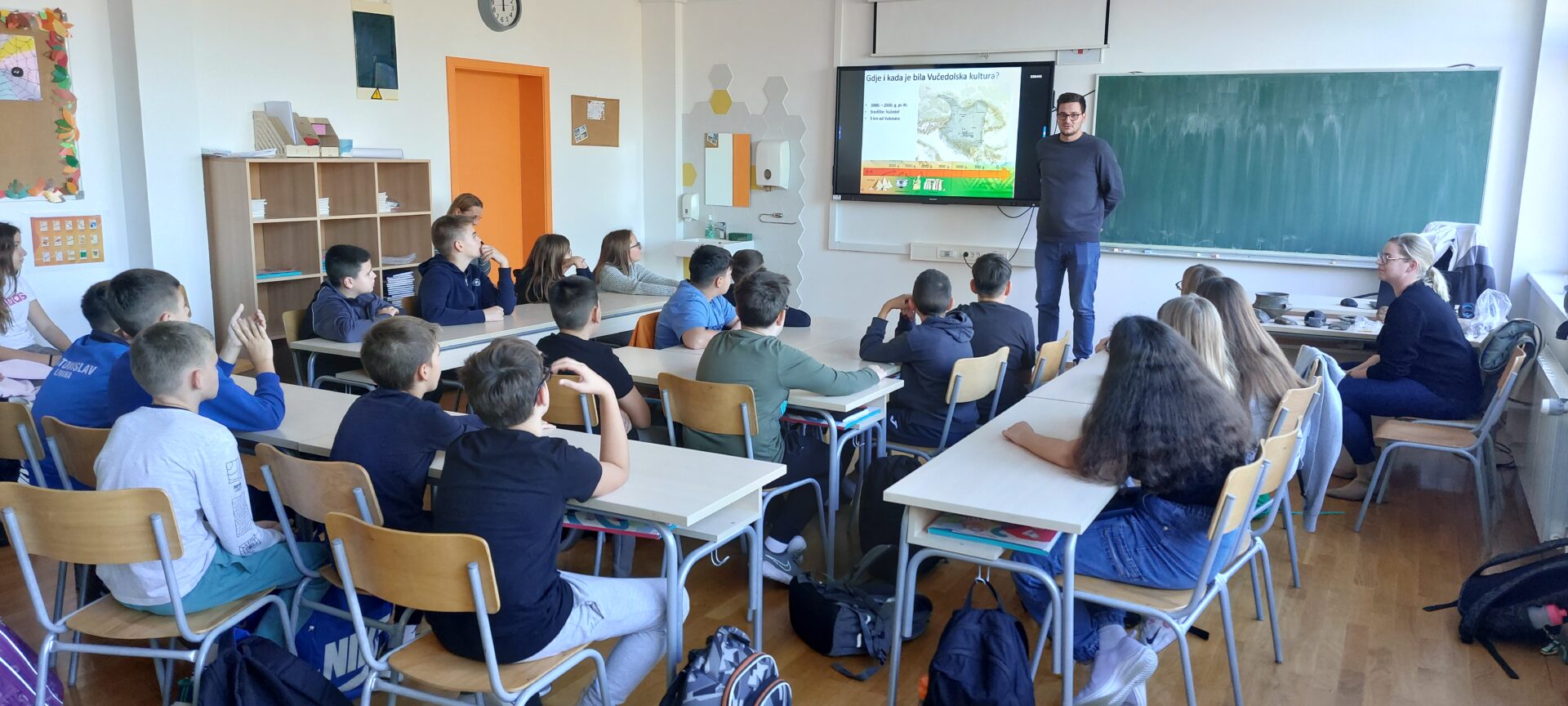 Zahvaljujući dugoj suradnji naše škole i Muzeja vučedolske kulture iz Vučedola, Vukovara, dana 5.11.2025. našu školu posjetili su djelatnici muzeja i tom prilikom učenima petog razreda organizirali prezentaciju i radionicu u sklopu nastave povijesti. Učenici su tako imali priliku proširiti svoja znanja o životu i običajima Vučedolaca, njihovim dostignućima i vjerovanjima. Također, učenici su u sklopu radionice mogli iskušati svoje sposobnosti u tkanju i izradi jednostavnih predmeta od vune. Učenici su bili jako zainteresirani i aktivni pa se nadamo nastavku suradnje. Hvala djelatnicima Muzeja!
