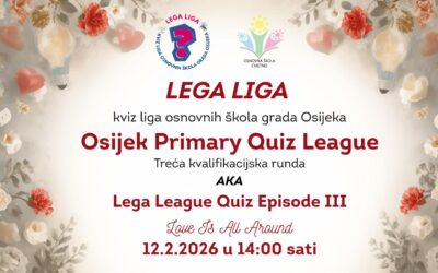 LEGA LIGA Episode 3 It’s QUIZ TIME Lega moj! Treća runda našeg Lega liga kviza održat će se u četvrtak 12.2.2026. godine s početkom u 14:00 sati. Tema treće runde biti će LOVE IS ALL AROUND (Valentine's Day, love idioms, songs, movies, trivia…).. Timovi imaju...